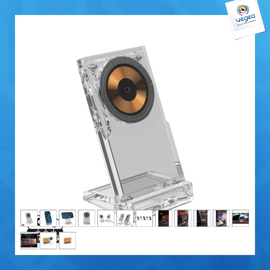 Chargez votre téléphone sans effort avec notre support de charge sans fil de 15 W, conçu pour tous les téléphones compatible avec la charge magnétique sans fil. Grâce à ses puissants aimants, votre téléphone reste bien en place, qu'il soit positionné verticalement ou horizontalement, ce qui est parfait pour téléphoner, naviguer ou regarder des vidéos. Fabriqué en acrylique de qualité, ce support n'est pas seulement fonctionnel, c'est aussi une superbe pièce décorative. Personnalisez-le avec des impressions couleur éclatantes ou transformez-le en un trophée unique et personnalisé qui reflète votre style. Le support est livré avec un câble de charge rapide USB-C de 120 cm, garantissant une connectivité transparente et une charge rapide à chaque fois. Améliorez votre espace de travail ou votre maison avec un chargeur qui allie forme, fonction et flair ! Emballé dans une boîte kraft certifiée FSC.