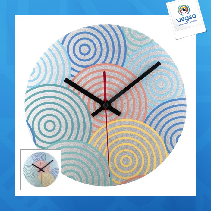 - Pendule murale en aluminium brossé, personnalisée selon vos besoins