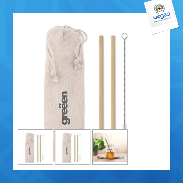 Set de 2 pailles personnalisables bambou avec brosse