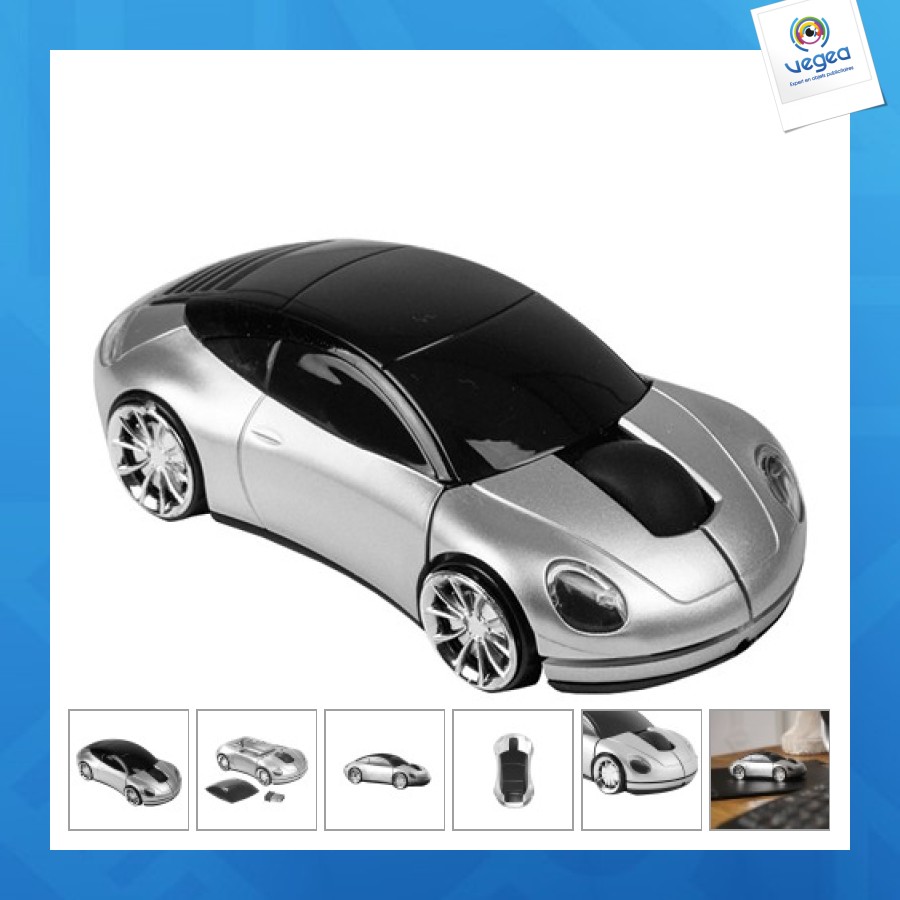 Souris sans fil en plastique ABS avec l´apparence d´une voiture. Récepteur situé dans le coffre, avec possibilité de marquage digital en quadri. Matière : ABS