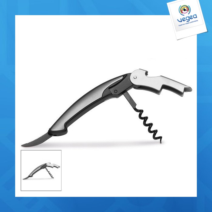 - Fonctionnalités : coupeur de feuille, ouvre-boîte, tire-bouchon