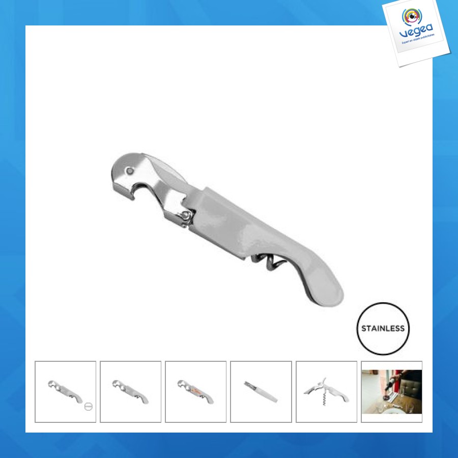 - Astucieux système de double levier permettant d'ouvrir toutes les bouteilles en silence et sans difficulté.